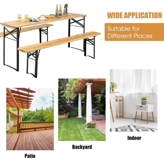 3 Pieces Folding Wooden Picnic Table Bench Set