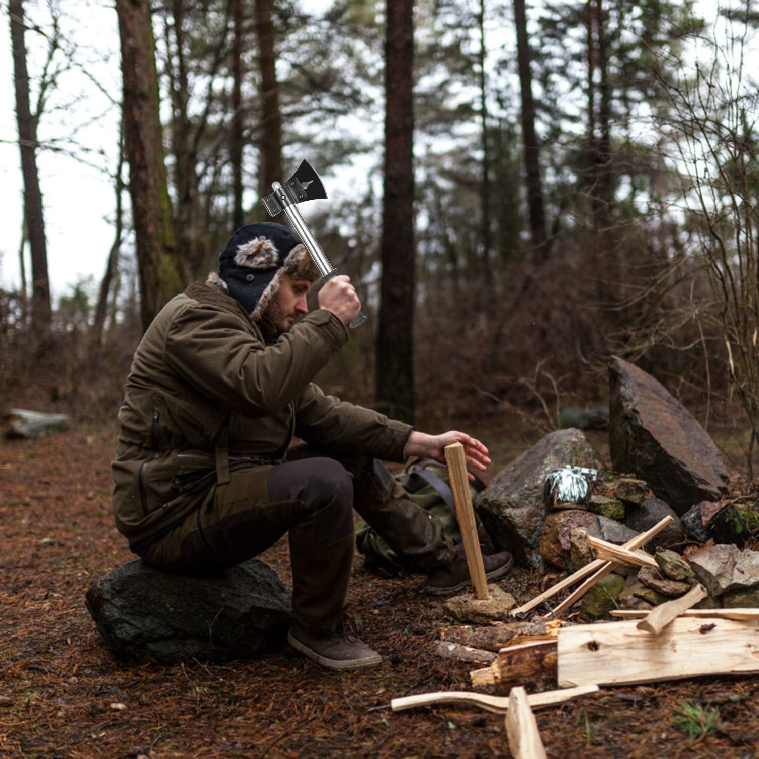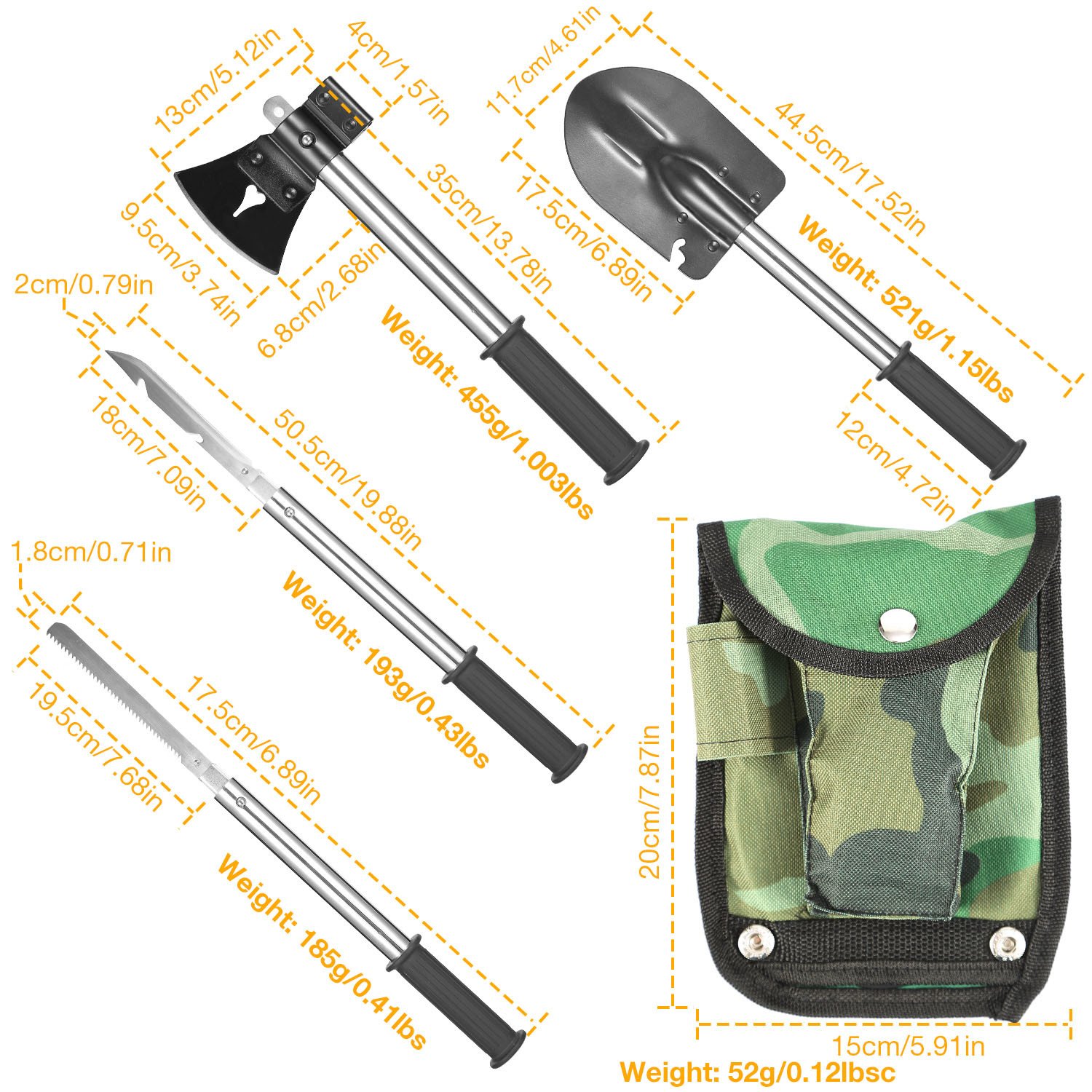 ** MULTIPLE FUNCTIONS*:Can be detached and reassembled to work as shovel,axe,knife,saw,bottle opener and nail puller.