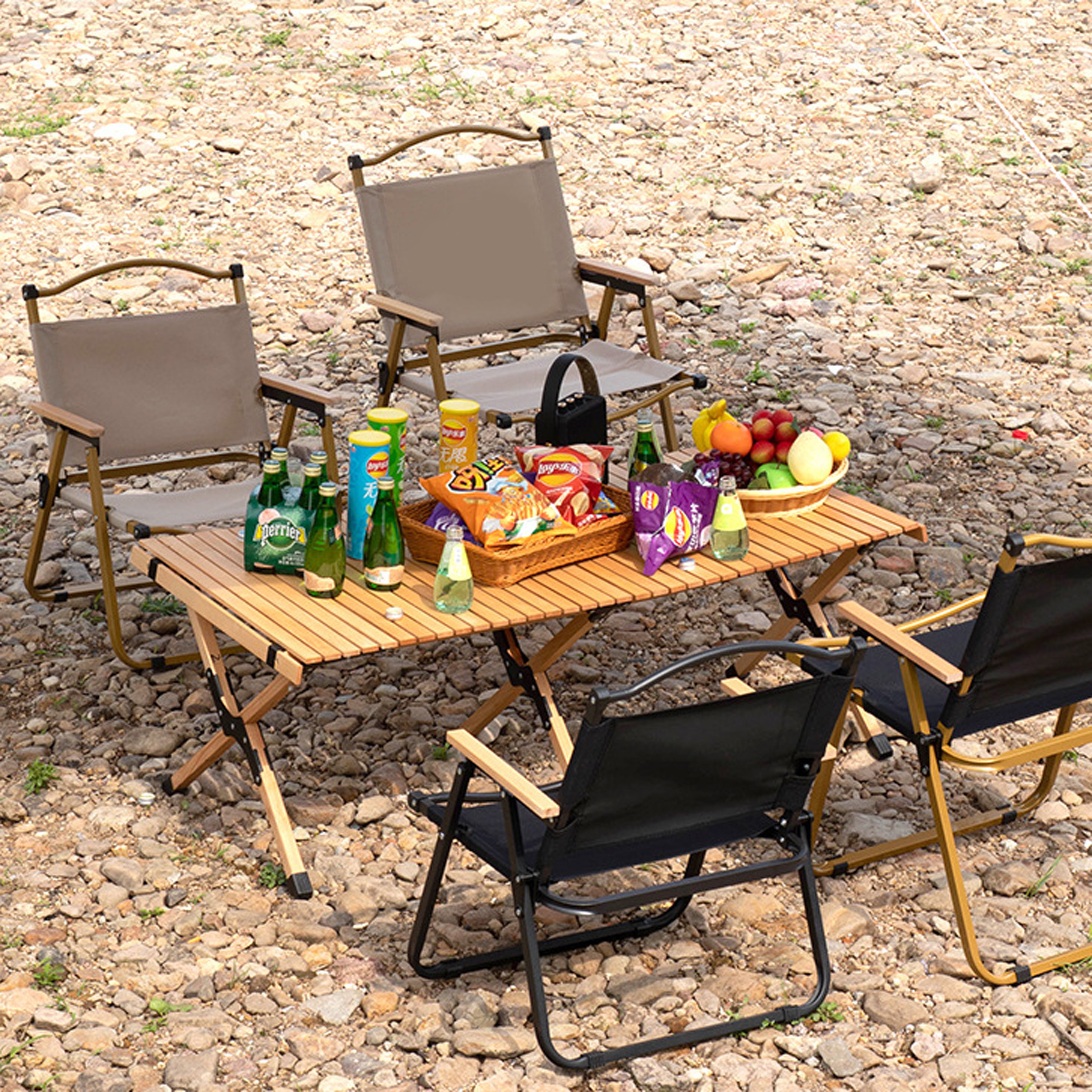 Home > Outdoor folding chair fishing chair Kermit camping beach chair wood grain chair garden chair (color: beige)