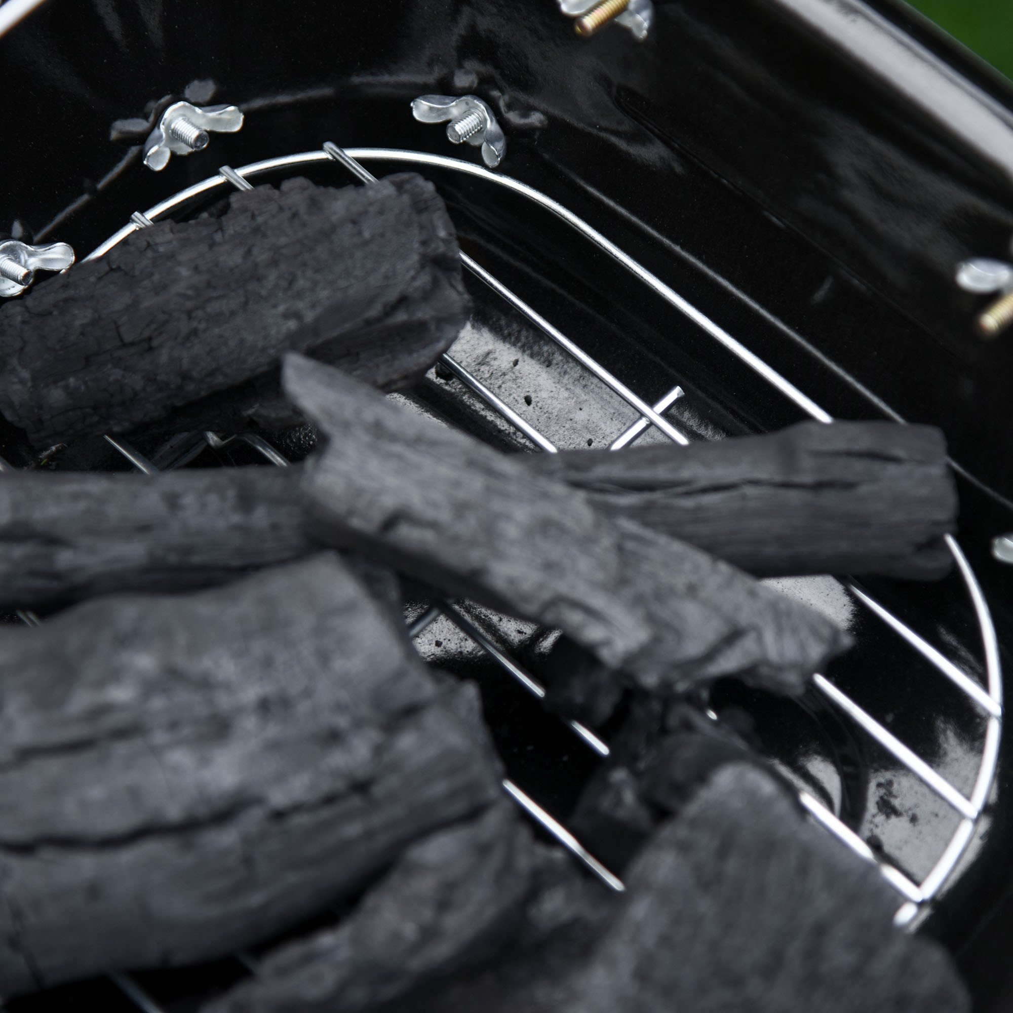 Charcoal Ready: Our small and portable charcoal grill features an enamel coating extending its service life and allows it to withstand 752°F as well as outdoor conditions without wearing out.