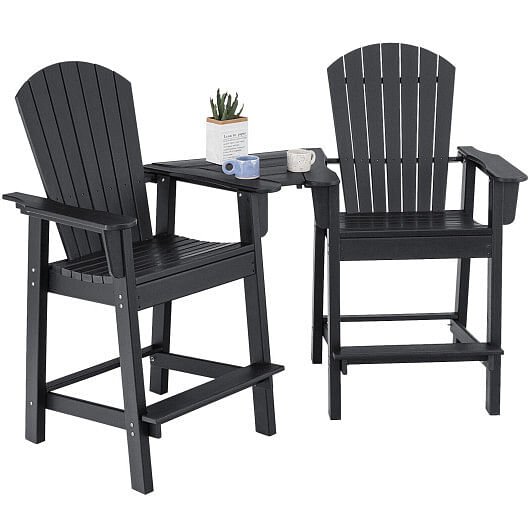 2 Pieces HDPE Tall Adirondack Chair with Middle Connecting Tray-Black 2 Pieces HDPE Tall Adirondack Chair with Middle Connecting Tray-Black 2 Pieces HDPE Tall Adirondack Chair with Middle Connecting Tray-Black