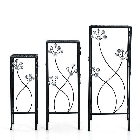 3 Pieces Flower Pots Display Rack with Vines and Crystal Floral Accents Square-Black