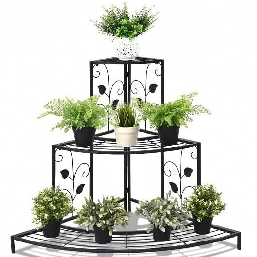 This brand new 3 step-style tiers makes up this charming metal corner rack can be used to show off your favorite potted plants.
