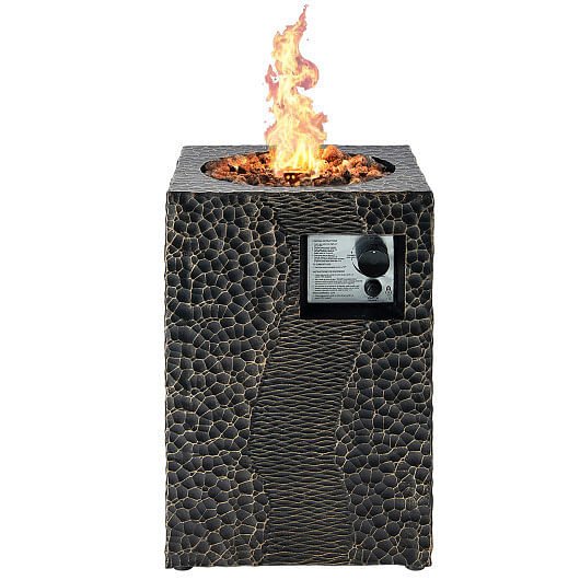 Specifications: Color: Black Material: Ore Powder Steel Stainless Steel Overall Dimension: 16'' x 16'' x 25'' (L x W x H) Net Weight: 51 lbs Output: 30 000 BTU Battery Required: 1 x AAA Battery (Not Included) Package Includes: 1 x Outdoor Fire Pit 1 x Instant Touch-up Pen 1 x Waterproof Cover 1 x Lava Stone 1 x Instruction