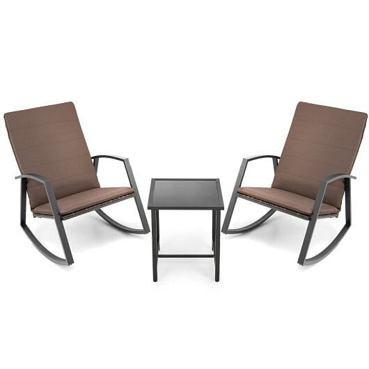 3 Pieces Patio Rattan Rocking Furniture Set-Brown 3 Pieces Patio Rattan Rocking Furniture Set-Brown 3 Pieces Patio Rattan Rocking Furniture Set-Brown