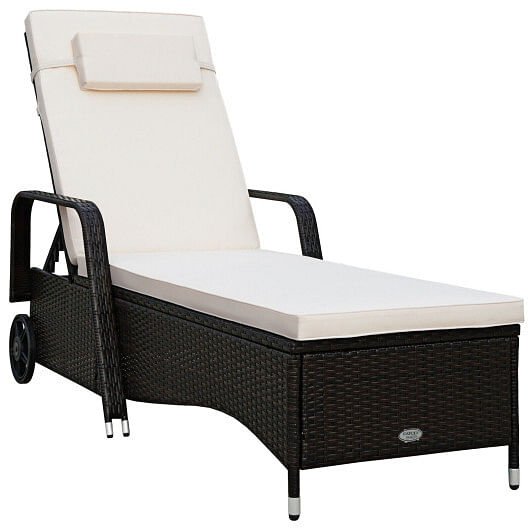 Specifications: Rattan color: Brown Color of cushion: White/White & Red Material: Galvanized steel PE rattan polyester fabrics Overall dimension: 79.0" x27.5" x 21"(L x W x H) Thickness of cushion: 2.0" Adjustable height: 14"/21"/27.5"/32.5"/37"/40.5" Weight capacity: 220 lbs